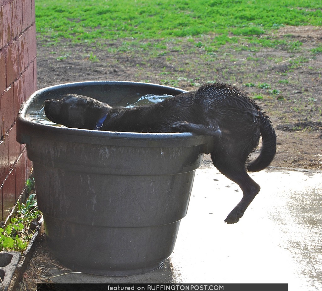 This Black Lab loves swimming so much she’ll even improvise. Is it hard to keep your Labrador Retriever out of the water?