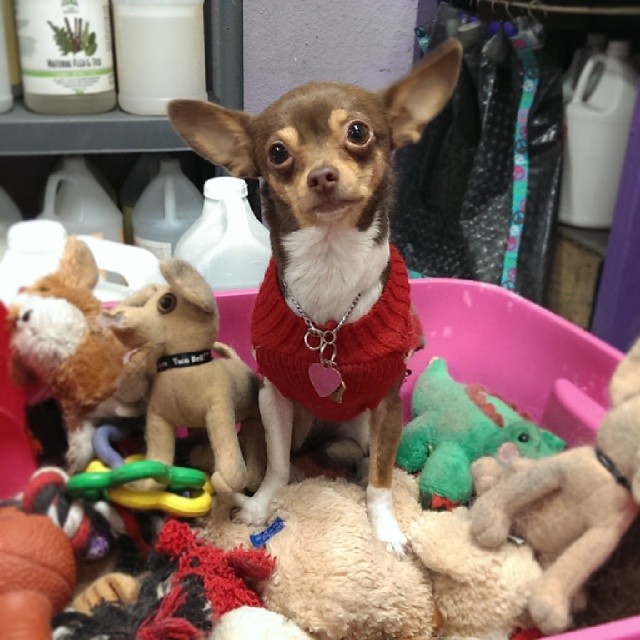 Here is an adorable Chihuahua in a bin of toys looking quite adorable giving such loving looks at his Mama who shared this picture with us. ...