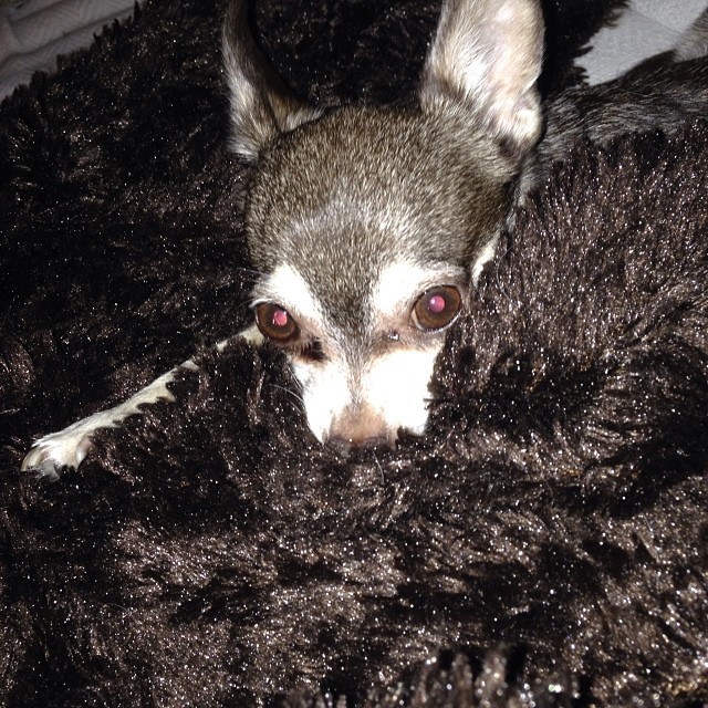 These two Chihuahua's owner know how much little Chis hate being cold. Lucky them she has faux fur all over the house! How do you keep your tiny little Chis...